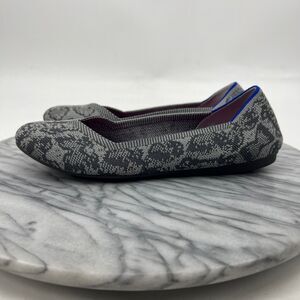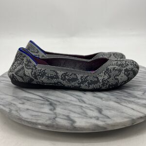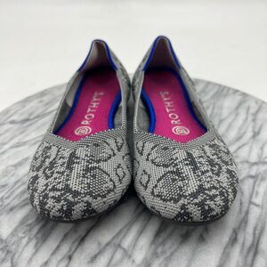 Rothys Womens 6.5 Doll Shoe Grey Stone Snake Print Knit Washable Slip On Flats