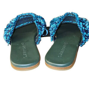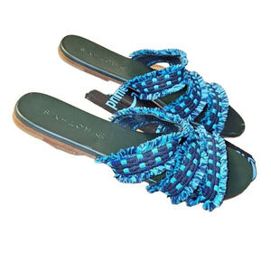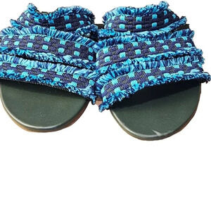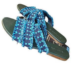 Rothy's Womens Blue Fringe Triple Fabric Strap Slide On Flat Sandals 6