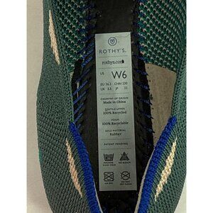 Rothys Women's The Point Moroccan Flats W6 Green Print Recycled Knit Rubber Sole