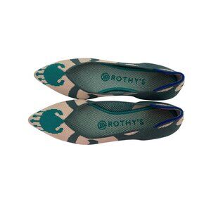 Stylish and sustainable, these Rothy's flats feature a unique green elephant print and are crafted from 100% recycled materials. The pointed toe design and rubber sole provide both elegance and comfort for everyday wear.