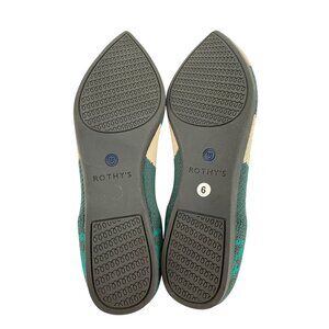 Rothys Women's The Point Moroccan Flats W6 Green Print Recycled Knit Rubber Sole