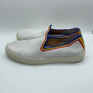 Rothy's Women's size 10 White Rainbow Slip On Shoes Colorful Preppy Casual