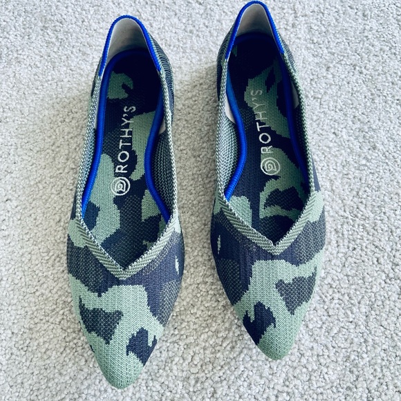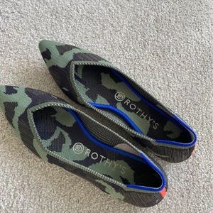 Excellent condition camo Rothy’s pointed flats. Comfy, washable, and super cute