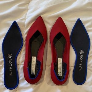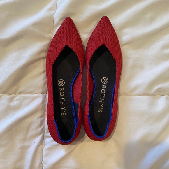 EUC Rothy’s red point flat in 8.5 (fits like an 7.5-8 in my opinion) perfect for the holidays! Worn a handful of times :)