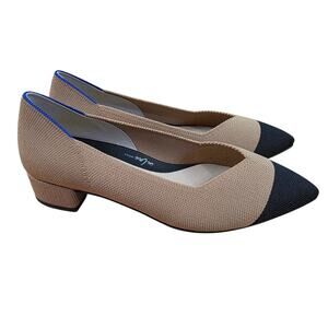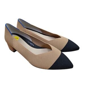 Rothys the High Point Cap Toe Wren Women's US Size 9.5 Tan/Black Knit Classic