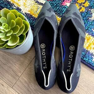 - Rothys the point size 10 retired gray camo white halo woman’s flat shoes