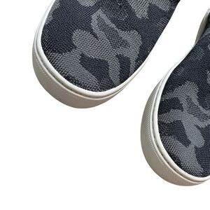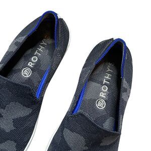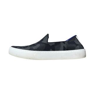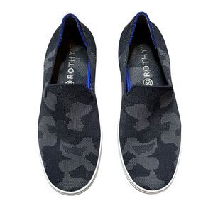 Experience the perfect blend of style and comfort with Rothy's loafers. These slip-ons feature a sleek black and gray camo design, crafted from sustainable materials for a chic and eco-friendly choice. Ideal for casual outings, they offer a seamless fit and effortless elegance.