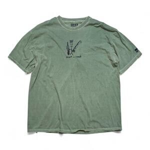A true gem! This tee shows a gentle sun-washed fade but no holes or major stains. Soft ring-spun cotton feels broken-in and breathable. The stick-figure hunter-angler artwork and garment-dyed sage tone give instant camp-core energy without trying.