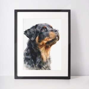 Rottweiler Watercolor Pet Portrait - Dog Wall Art Poster Unframed