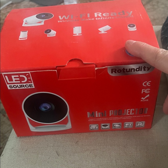 Compact Rotundity mini projector in vibrant red. Ideal for home entertainment.