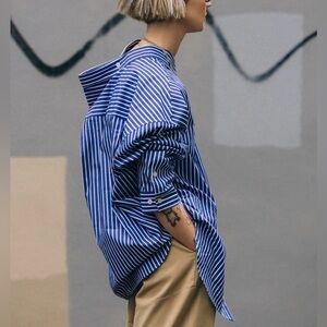 Cotton can be worn clasped or open. We love both ways. Extra-long sleeves. Pearl buttons. Front chest pocket. Sleeve open placket with buttons. Curved bottom edge.