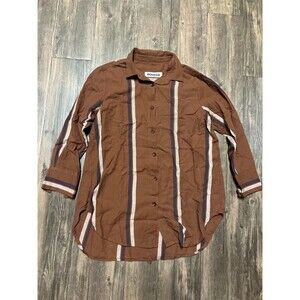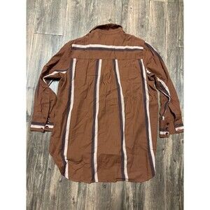 Roucha Womens Brown Long Sleeve Button Striped Cotton Fish Cut Collared Shirt