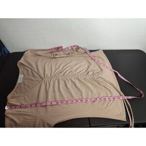 Rouched Swiss Dot Fitted 3/4 sleeve blouse, nude, size XL
