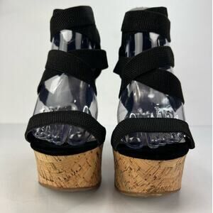 Rouge Helium Black Strappy Sling-back Stretch Cork Platform Wedge Women’s Shoes Size 8.5