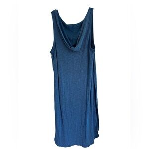 A pullover-style maxi dress made from soft jersey knit, featuring a hood and a relaxed, sleeveless design—likely a cover-up or loungewear piece Chic blue ribbed top by Rouge Collection. Ideal for casual wear. Preloved excellent condition