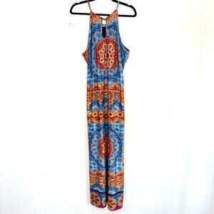 Rouge Collection Boho Colorful Print Halter Stretch Maxi Dress