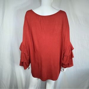 Rouge Collection Rust Colored Ruffles Bell Sleeve Top