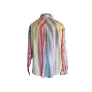 Rouge Collection Shirt Womens 1X Multicolor Striped Button Up Long Sleeve Top
