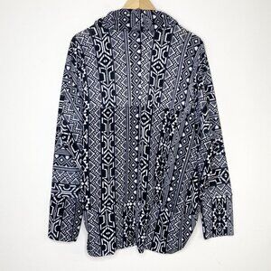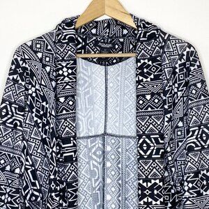 Rouge Collection Women's 3X Black White Aztec Print Long Cardigan Plus Size Boho