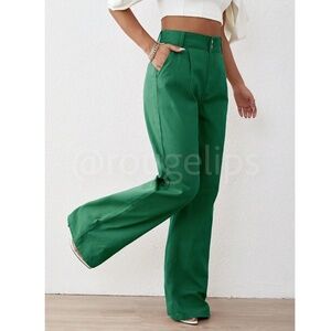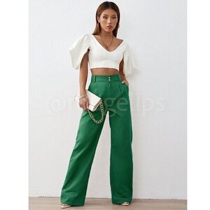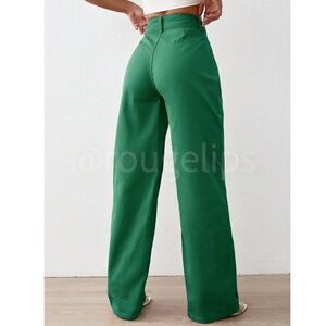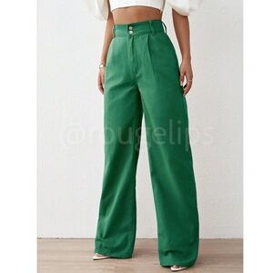 Stylish green wide-leg jeans. Flattering high waist. Perfect for any occasion.