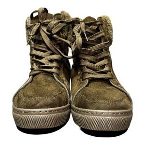 Rouge Helium Olive Green Faux Fur Trim Lace-Up Booties Size 7