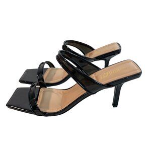 Rouge Helium Passionate Square Toe 3.5in Heels Double Banded Black Sandals Sz 9