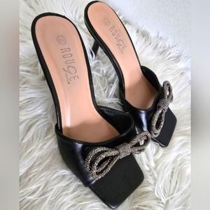 Rouge Helium Rhinestone Embellished Black Heeled Slippers Size 8.5