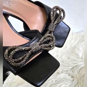 Rouge Helium Rhinestone Embellished Black Heeled Slippers Size 8.5🌴