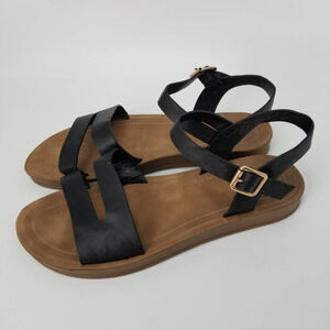 Rouge Helium Womens Ankle Strap Sandals Black Cut Out Adjustable Buckle Size 9