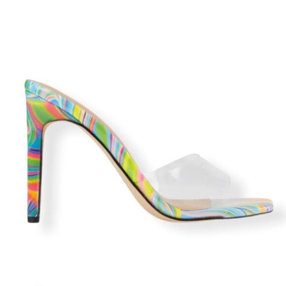 Rouge Helium Women's High Heel Square Slip On Sandals Clear Multicolor Size 9