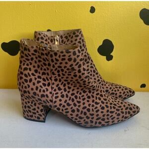 Statement boots that do the talking — soft suede-feel leopard print with a pointed toe and sleek block heel. Serve downtown energy with denim or edge up a mini dress. Side zipper for easy slip-on.