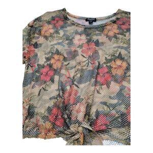 Rouge Mesh Floral Bell Bottom Pants Set Tie Front Crop Top Boho Women's Size 1X