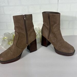 Rouge Womens Chunky Heel Boots size 6 Faux Leather Taupe Y2K Style