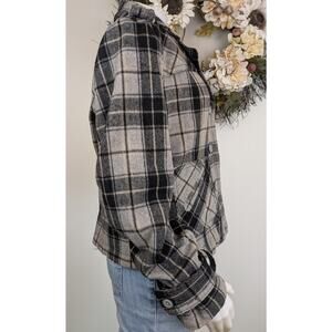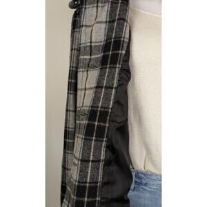 Rough Hewn Wool Blend Plaid Button Jacket XL Short Moto Peacoat Black Gray Tan