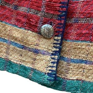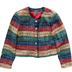 Rough Rider Circle T Chenille Cropped Buttoned Jacket Tan Green Blue Size M