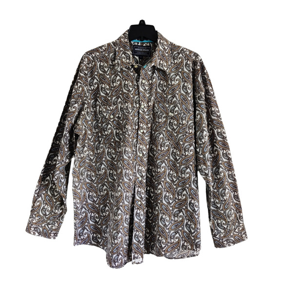 Rough Stock Panhandle Slim Long Sleeve Paisley Pearl Snap Shirt Western Men's XL
