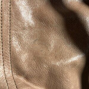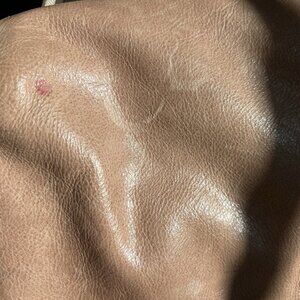 Leather Color is a beige/light brown shade with a hint of pink. See pictures for the exact color for reference.