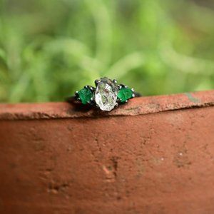 Rough cut emerald and Lake County diamond ring, handmade jewelry
