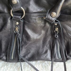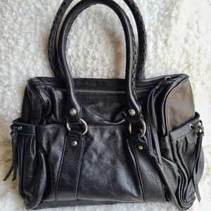 Rough Roses Soft Black Leather Satchel