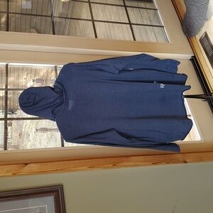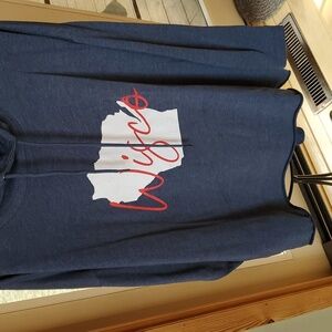 EUC...Blue hoodie featuring a Wisconsin "Wisco" graphic with red text. Great for a cool day. Check out all pics for details and approximate measurements.