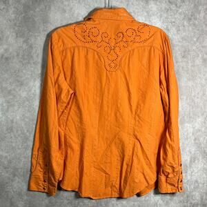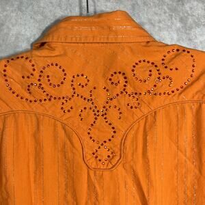 Roughrider Western Shirt Womens Large Orange Metallic Rhinestones Pearl Snap