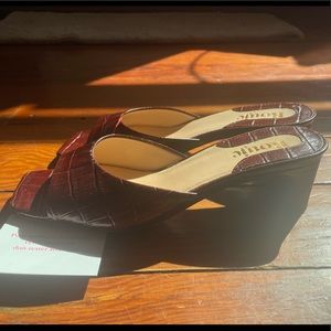 Rouje Arlette Burgundy Red Croc Mule Sandals in Size 36
