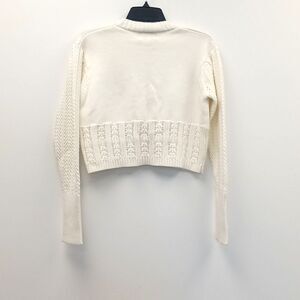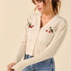 Rouje jojo cardigan in ecru with delicate floral embroidery. Perfect for layering. Long sleeve with open weave crochet accents. Classic style and getting harder to find since it sold out on Rouje website.