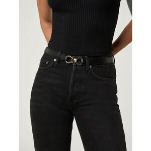 Rouje Laure Belt Black M/L Double Buckle Leather Belt