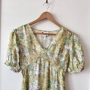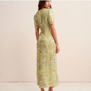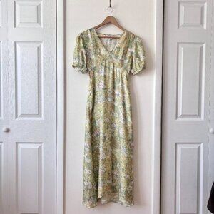 Rouje Linette Maxi Satin Dress Green Floral Size 6