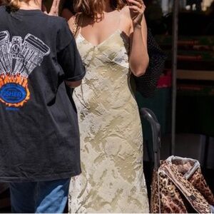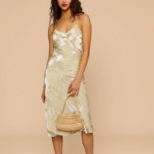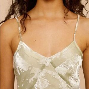 Rouje Paris Diane Dress.Color: Light green. Size: EU 34. Spaghetti straps, a cut on the chest to highlight the neckline, and a gorgeous fabric: a super-light burnout velvet, perfect for summer.