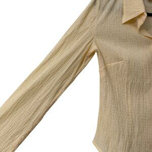 Rouje Paris Yellow Palmyra Crinkle Long Sleeve Button Shirt Womens 36 Small