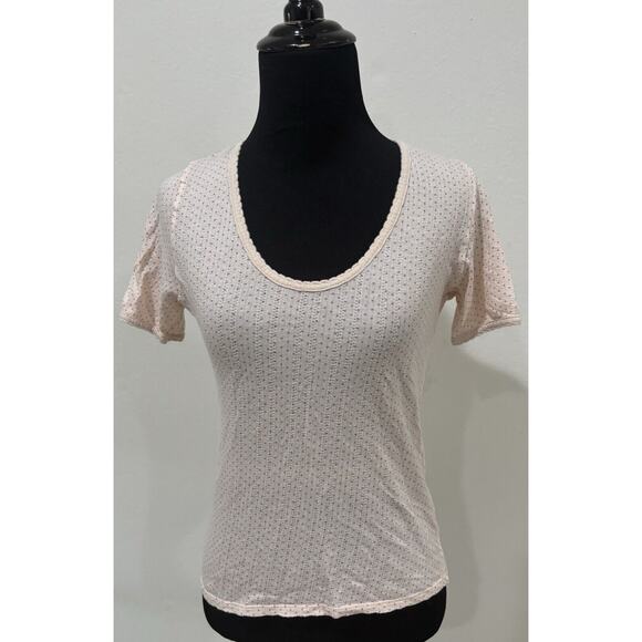 Rouje Pointelle Pink Dot T-Shirt Size 40 Fits Like Small