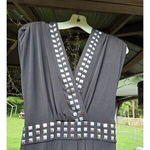 Roulette Black Studded V-Neck Dress Size XL Cap Sleeves NWT Grommet Dress