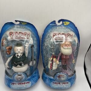 Round 2 Memory Lane Rudolph Red Nosed Reindeer Sam the Snowman Casual Santa. Item is vintage old. Never been out of box sealed. Due to aging boxes not in amazing shape have damages dust dirt. Please review photos before completing transaction. SELLING AS IS WITH NO RETURNS ONLY FINAL SALE PLEASE